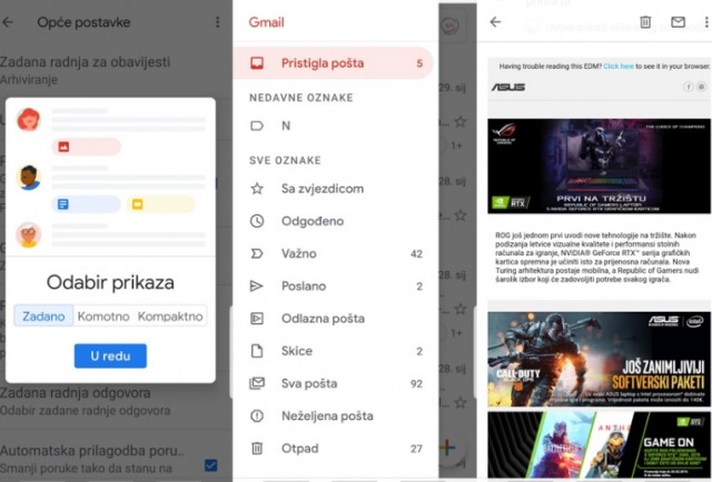 Promjena je i Google Sans font koji sada izgleda modernije, trendovski i dio je bilo koje ažurirane aplikacije kompanije. Budući naši pametni telefoni imaju različite duljine dijagonala i omjera prikaza, Google je omogućio odabir između standardnog, udobnog i kompaktnog prikaza.