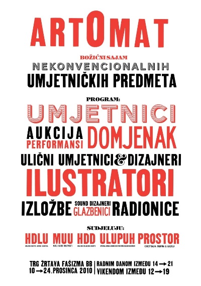 Hrvatsko društvo likovnih umjetnika u Zagrebu, u kreativnoj suradnji sa Muzejem ulične umjetnosti - MUU, Hrvatskim dizajnerskim društvom-HDD, Hrvatskom udrugom likovnih umjetnika primijenjenih umjetnosti - ULUPUH i Concept store/Galerijom Prostor organizira prvi božićni sajam nekonvencionalnih umjetničkih proizvoda, pod nazivom artOmat, koji se održava u Domu hrvatskih likovnih umjetnika, Trg žrtava fašizma bb.