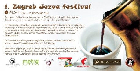 U Fly!Baru vas 6. lipnja od 14 sati očekuju turski pop, trbušne plesačice, priče o kavi i zabavno natjecanje u pripremi turske kave. Žiri će ocijeniti i nagraditi najkreativniji kostim, najljepši set šalica i najbolju priču. Portal Prava Kava za vas traži najbolju kavu u gradu.