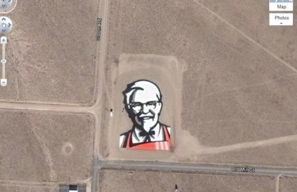 Uzmemo li u obzir koliko ljudi u dokolici svakoga dana pretražuje svaki zakutak našeg planeta Google Earthom, ne treba se čuditi odluci Kentucky Fried Chickena da pored autoceste u Nevadi stavi ogroman logo svoje maskote Colonela Sandersa, veličine 8200 metara kvadratnih.