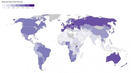 U Hrvatskoj se najviše pije vino, dok Bjelorus godišnje popije 17,32 litre alkohola, a od toga najviše žestice. Gorespomenuti Rusi "lošiji" su od nas s 11.05 popijenog alkohola po osobi na godinu. Cijelo istraživanje pogledajte ovdje.